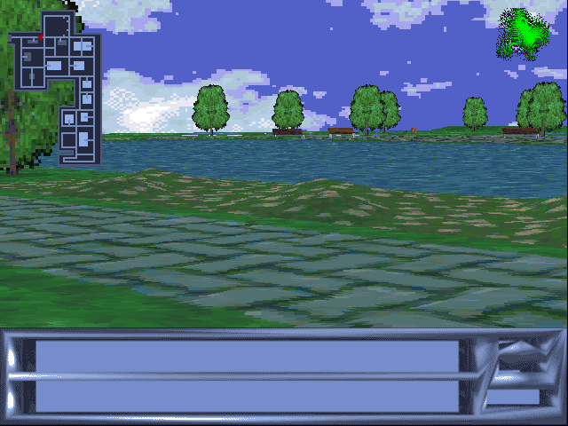 Graphically, Menateus reflects the turn-of-the-millennium aesthetic with low-polygon models and pre-rendered backgrounds. While textures may appear dated by today’s standards, the art direction shines through vibrant color palettes and imaginative level design. The Cyberdome glows with cool blues and purples, evoking a futuristic digital realm, whereas the palace of elements bursts with fiery oranges, deep aquamarines, and lush greens—each hall representing earth, air, fire, and water in dynamic relief.