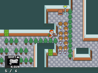 Visually, the game adopts a charming pixel-art aesthetic that feels both nostalgic and seasonally appropriate. Simple tile sets represent office cubicles, stairwells, and holiday decorations, while the characters are rendered with enough detail to distinguish Solid Santa from his pint-sized adversaries. The color palette leans heavily on greens and reds, reinforcing the Christmas theme without becoming garish.