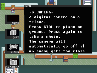 The user interface is clean and unobtrusive. An item wheel displays available gadgets, while a small radar-like icon hints at enemy detection cones. There’s no health bar—getting caught simply restarts the level—so the screen remains largely uncluttered, allowing you to focus on the tactical challenge. For a freeware competition entry, the polish is impressive and remarkably consistent.