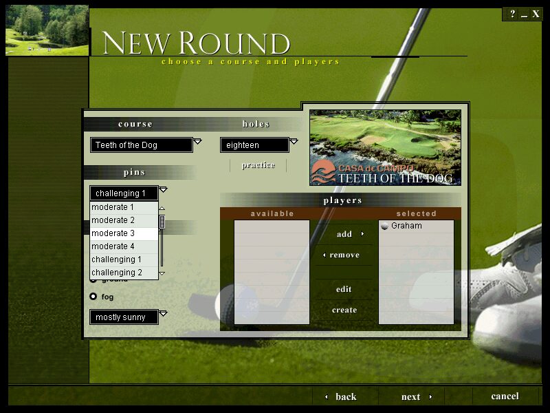 Microsoft Golf 1998 Edition stands out as a robust and highly customizable golf simulation. Its three 18-hole courses and one nine-hole course offer a diverse array of playing environments, while the configurable scoring systems and difficulty levels cater to every type of golfer. The inclusion of fly-by previews and vertical views ensures that players have the tools they need to plan each shot strategically.
