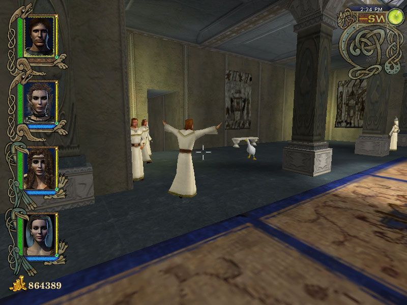 Character models boast a respectable level of detail for their time, though animations sometimes appear stiff or clipped during combat. Spell effects are bright and satisfying, with fireballs, lightning bolts, and healing spells each carrying their own visual flair. The user interface, while serviceable, can feel dated; fonts and icons are small, and inventory screens require frequent scrolling, especially once your party accumulates gear.