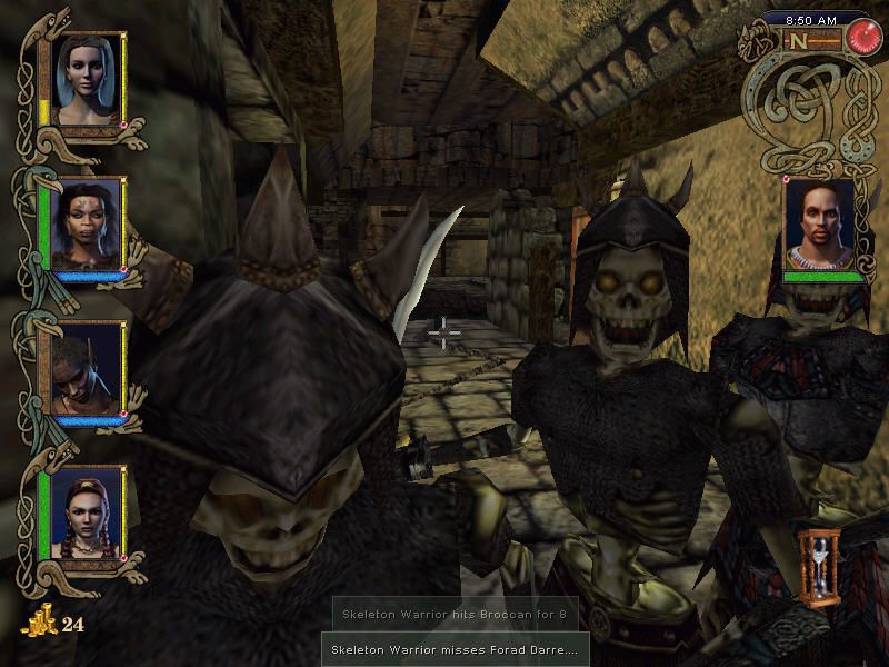 Combat unfolds in real time by default, with the option to pause and switch to turn-based mode at any moment. This hybrid system caters to both action-oriented players and tactical thinkers. Real-time battles can become hectic when facing multiple foes, but pausing allows for deliberate spellcasting, potion use, or strategic positioning. Party formation options further refine your tactics, letting you arrange fighters in front and spellcasters behind, though AI pathfinding quirks occasionally cause minor frustrations.