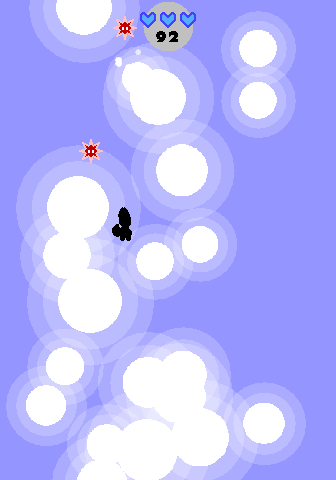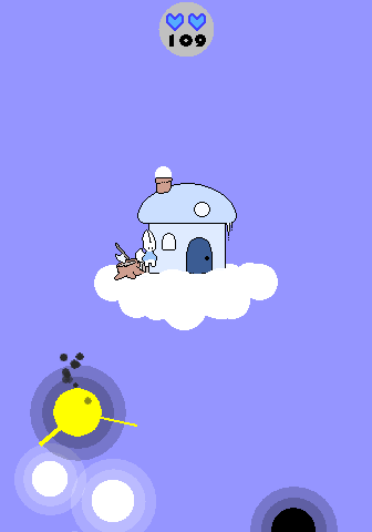 The challenge ramps up through a variety of procedurally generated obstacles. Storm clouds distort your trajectory, thunderheads strike with sudden jolts, and small red suns drift across your path. Colliding with any of these hazards turns your avatar black and sends you plummeting back down, breaking your combo and testing your resolve. The risk-and-reward loop of climbing higher versus the fear of a tumble adds a tense undercurrent to every run.