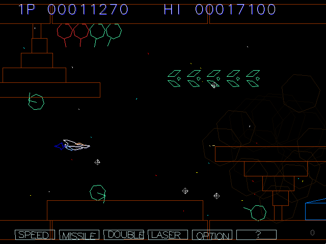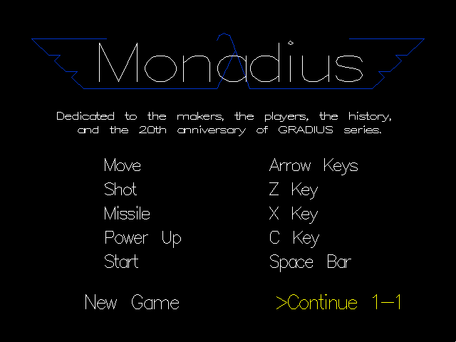 True to its open-source roots, Monadius uses minimalist vector graphics that evoke the arcade cabinets of the 1980s but with a modern fluidity. Enemy ships and structures are rendered in crisp lines and solid colors, allowing you to track fast-moving projectiles against stark backgrounds. The transparency and glow effects on lasers and explosions add a satisfying pop without overloading the screen or distracting from the action.