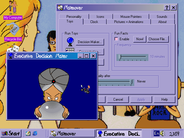 Beyond Concentration, the Decision Maker widget serves up a handful of small diversions: a speaking clock that taunts you with random quips at the top of each hour, a sliding block puzzle that uses themed artwork, and a desktop toy you can drag around for a bit of mindless fun. These additions won’t challenge seasoned gamers, but they do offer intermittent amusement and reinforce the show’s irreverent tone. If you’re looking for deep mechanics or significant progression, however, you may feel the package is light on substance.