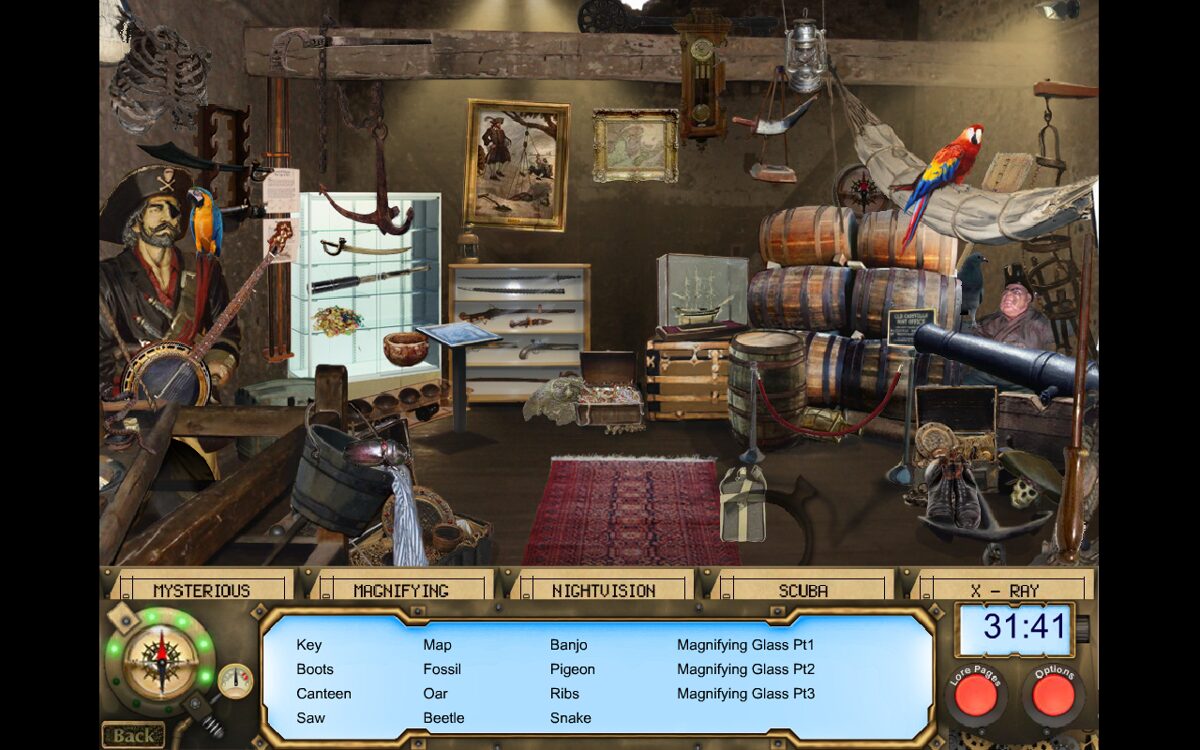 While the character models remain minimal—fitting for a hidden object adventure—the environmental artistry more than makes up for it. Whether exploring a moonlit shoreline or rummaging through dusty crates, the graphics consistently convey a sense of history and mystery that will appeal to players who value mood alongside gameplay.