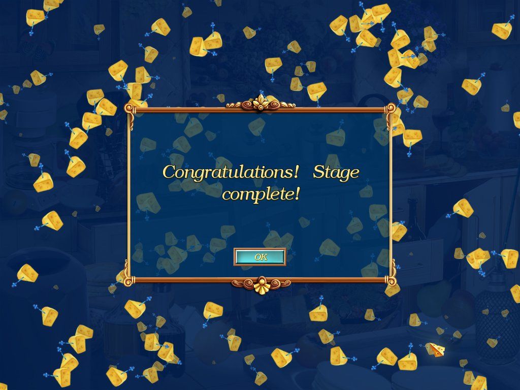 Hints are served on a silver platter—literally. A cheese wedge icon reveals the exact location of a single object when clicked, and scattered extra cheese pieces can be collected and banked for later use. This resource-management layer encourages strategic saving of hints for particularly tricky scenes.