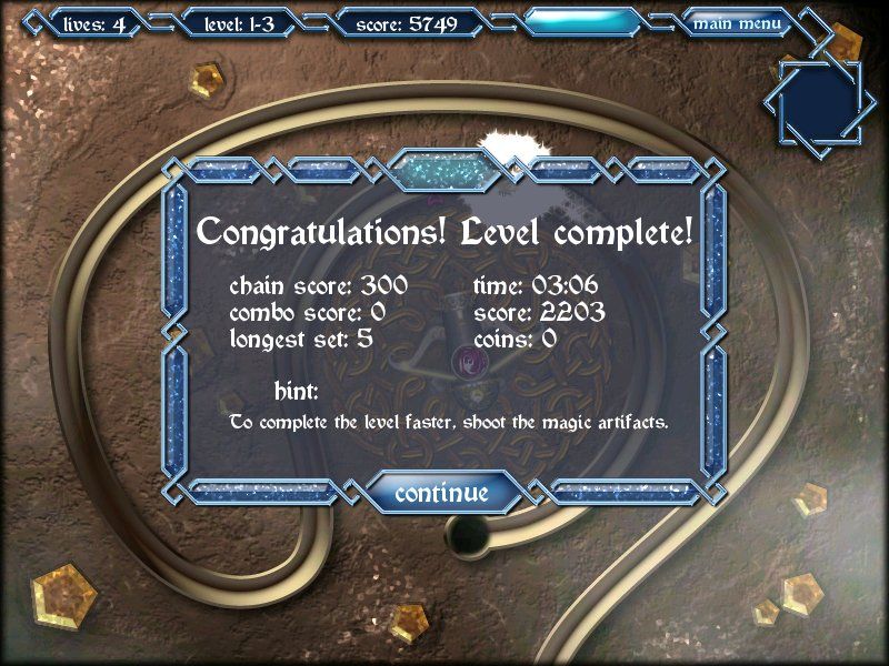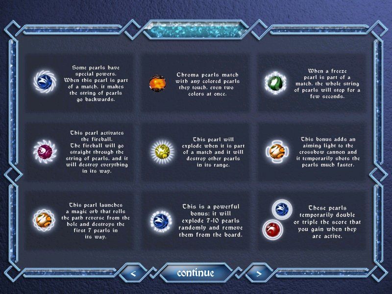 Mythic Pearls: The Legend of Tirnanog delivers an addictive loop of color-matching action that feels both familiar and fresh. At its core, the game challenges you to fire pearls from a crossbow cannon into a winding chain of gems spiraling toward a dark vortex. Matching three or more pearls of the same hue clears them from the string, stalling the chain’s advance and racking up points. The mouse-driven aiming and shooting controls are intuitive, allowing for rapid, precise shots once you get accustomed to the cannon’s firing arc.