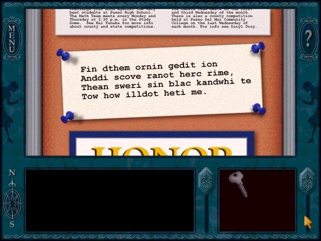 Nancy Drew: Secrets Can Kill introduces players to a classic first-person point-and-click adventure format that emphasizes exploration, deduction, and puzzle-solving. From the moment you arrive at Paseo Del Mar High School, the interface remains intuitive: you navigate by clicking to move, interact with objects, and converse with a colorful cast of characters. The simplicity of the controls makes it accessible to newcomers, while the depth of the puzzles keeps seasoned adventurers engaged.