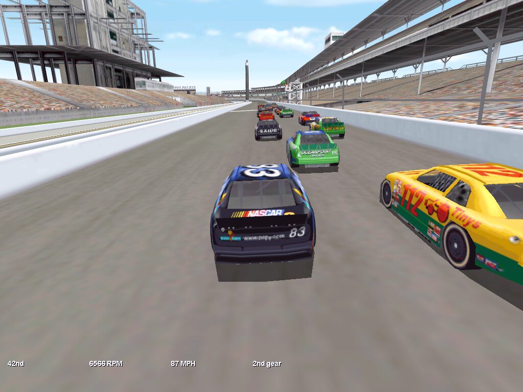 The graphics engine in NASCAR Racing 3 receives a notable upgrade, supporting resolutions up to 1024×768 with full 3D acceleration. Car models feature sharper textures and more defined geometry, making every contour and sponsor decal stand out as you blaze around the track. Even at high speeds, visual fidelity remains stable, giving a smooth and convincing representation of real NASCAR machinery.
