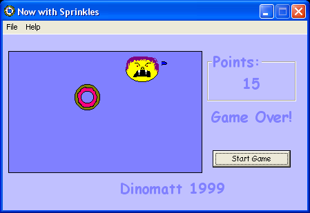 Now with Sprinkles delivers a straightforward yet addictive gameplay loop. You guide the Good Guy character around a confined arena using the arrow keys, aiming to collect as many doughnuts as possible before the Bad Guy catches up. The core mechanic is simple: normal doughnuts grant you 1 point each, while the more elusive sprinkled doughnuts are worth 3 points. This risk-reward dynamic keeps you constantly weighing whether to dart after the high-value treats or play it safe by grabbing the plentiful regular ones.