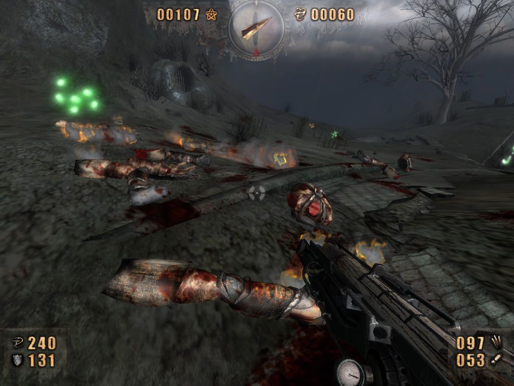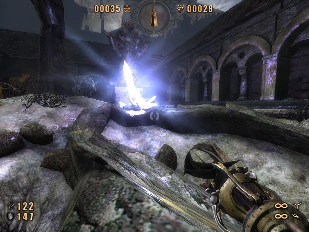 Painkiller: Resurrection’s arsenal features eight weapons, each with two firing modes and unique special attacks. From a razor‐spinning grenade launcher to a demon head that unleashes concentrated laser beams, every weapon feels distinct and satisfying. Scavenging urns, caskets, and crates yields ammunition, armor, and gold—fueling both your survival and score progression.