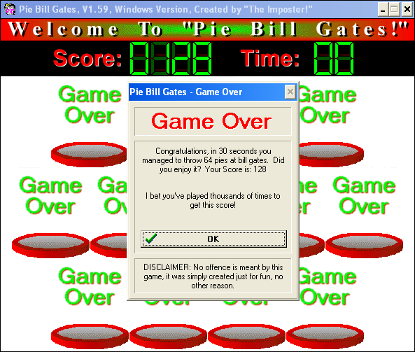 Perhaps the game’s most compelling graphic feature is its support for custom image sets. If you’re tired of hurling pies at the default Bill Gates sprite, you can import new bitmaps—friends, politicians, pets—whatever tickles your fancy. This mod-friendly approach keeps the visuals perpetually fresh and gives creative players an outlet for their artistic impulses.