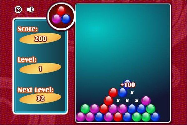 Controls are intuitive and responsive, using the left and right arrow keys to shift the cluster horizontally while up and down rotate the balls within the triangle. A single tap of the space bar sends the cluster plummeting instantly to the bottom, offering a satisfying sense of speed for advanced players who want to keep up momentum. As you master these inputs, you’ll start setting up multi-color chain reactions and learning the subtle physics of how clusters “slide” into gaps.