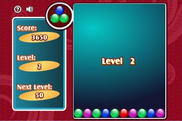 The level progression keeps the challenge fresh: on level one, you’re given a clear playfield, but starting at level two, a row of pre-placed balls sits at the bottom; level three introduces two rows, and so on. These stacks act as both obstacles and opportunities, since you can use the uneven terrain to wedge balls into hard-to-reach spots. If the pile ever reaches the top of the screen, it’s game over, so every move carries weight.