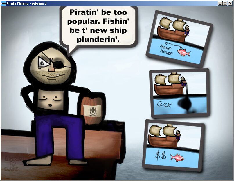 Short narrative interludes appear between fishing runs, often delivered through hand-drawn illustrations and brief text bubbles. These moments shine a light on the captain’s backstory—how gentrification forced him out of traditional pillaging, why he’s obsessed with preserving the “mystique” of piracy, and his conflicted reflections on employing eco-destructive tactics. Despite the morally dubious premise, the script leans into dark humor rather than overt moralizing.