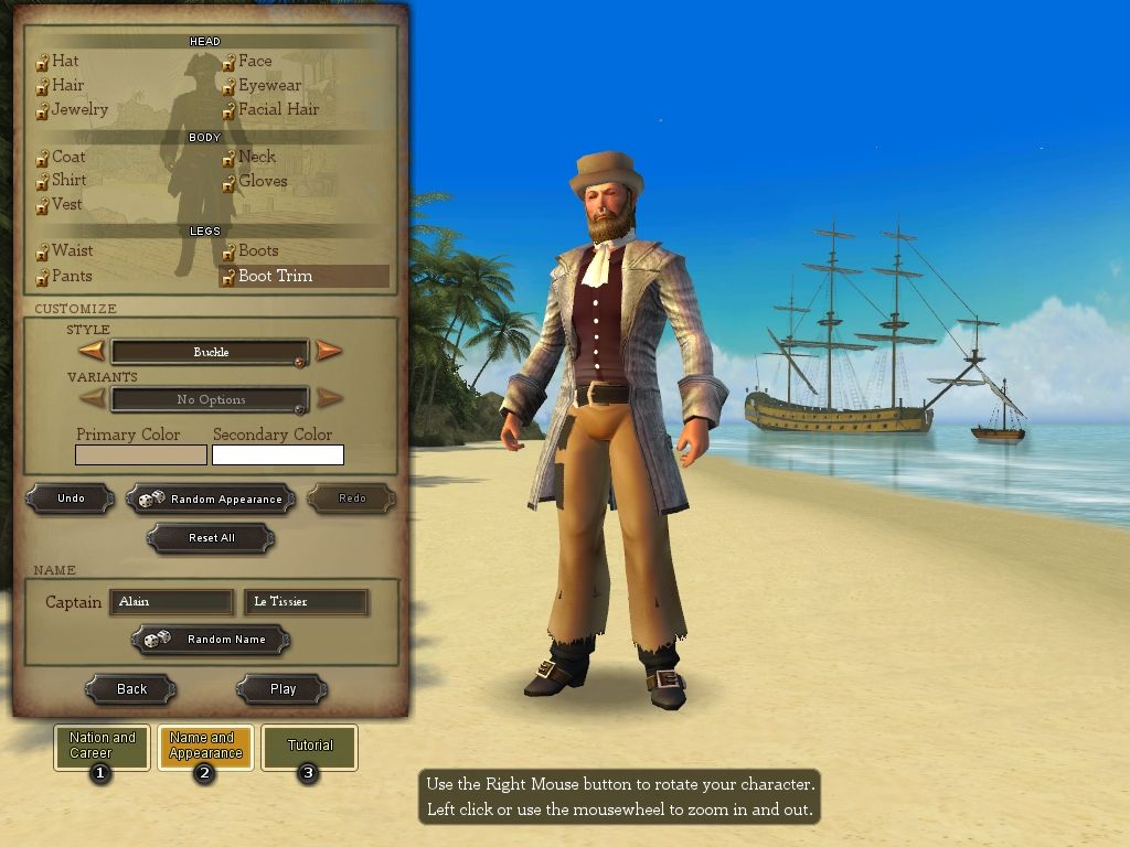 Customization plays a key role in visual variety: beyond standard facial features and hairstyles, you can outfit your avatar with peg legs, hook hands, and unique jewelry, all of which show up clearly in both cutscenes and open-world exploration. While textures may show their age on high-resolution monitors, the overall art direction remains strong and effectively captures a living, breathing Caribbean world.
