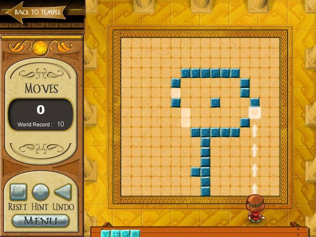 The user interface remains unobtrusive, with clean icons for undo, reset, and hint functions in standard mode, and a stark, streamlined look in expert mode. Level select screens clearly display your progress in each temple, along with medal counts, making it easy to track which puzzles you’ve perfected. Overall, the presentation strikes a fine balance between retro charm and modern clarity.