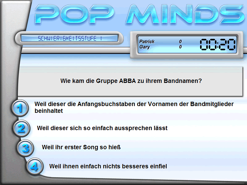 Pop Minds delivers a fast-paced, tongue-in-cheek quiz experience that will have you laughing out loud while testing your music trivia prowess. At the start of each session, one to three players enter the name of their fictional band and the title of the album they’re about to release. From there, the game wastes no time diving into nine rounds of questions, each carefully calibrated by difficulty—round one starts easy, while round six will really make you scratch your head.