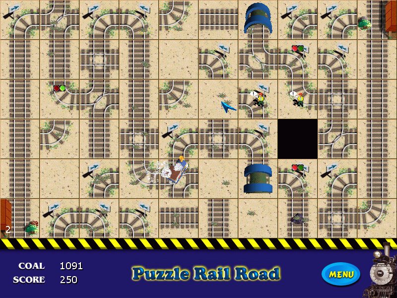 Puzzle RailRoad challenges you to think quickly and precisely as you lay down track pieces in real time. From the moment the whistle blows, the steam engine you control begins its journey, and you must work on the fly to build a viable route from the lower-left starting station to the upper-right end station. The twist is that you need to pick up every worker on the grid before reaching the destination—miss even one and the level is lost. Add to that the risk of derailment if tracks don’t align properly, and you have a tense, fast-paced puzzle experience that rewards both planning and adaptability.