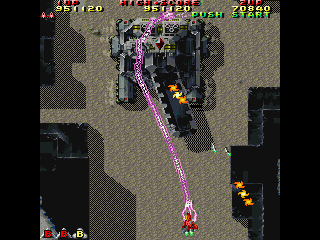 Raiden II builds on the classic top-down shoot-’em-up formula, delivering relentless action from the moment you hit the start button. Each level pits you against waves of alien fighters, ground turrets, and colossal boss ships, ensuring there’s never a dull moment. The responsive controls feel crisp, allowing you to weave in and out of enemy fire with precision. Whether you’re using the spread shot to carve lanes through hordes or unleashing your laser for concentrated damage, the combat always feels satisfying.