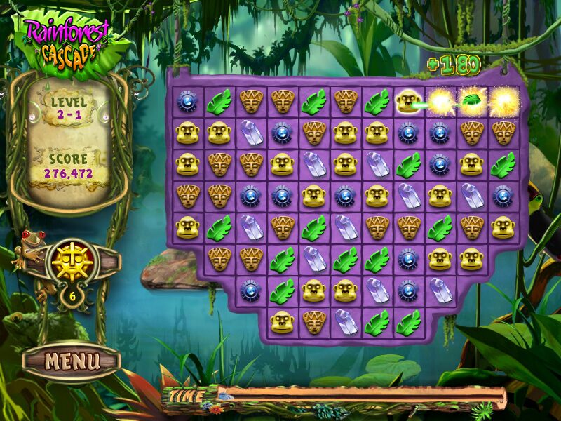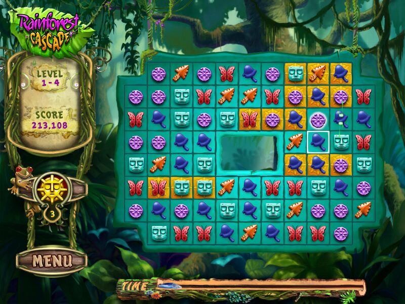 The difficulty curve is well-paced: early stages ease you in with straightforward grids, while later levels pack a denser field of locked tiles and cobwebs. Chain-reaction combos become a satisfying centerpiece as you learn to set up cascading matches and capitalize on bonus tiles. If you appreciate match-three puzzles that demand both quick thinking and long-term strategy, Rainforest Cascade’s gameplay loop will keep you engaged for hours.