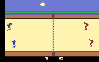 RealSports Volleyball captures the essence of a fast-paced volleyball match within the constraints of vintage hardware. You and an optional friend can team up or face off in a head-to-head competition, serving, setting, spiking, and blocking just as you would on a real court. Each rally unfolds under traditional volleyball rules, with the first team to 15 points emerging victorious. The learning curve is gentle, thanks to intuitive joystick controls, yet mastery requires precise timing and strategic positioning.