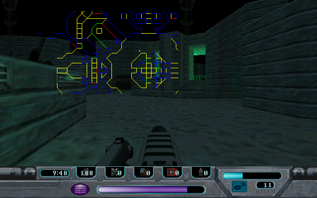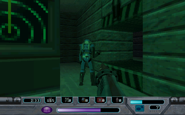 Special effects such as muzzle flashes, explosions and particle sparks during system breaches add kinetic flair to encounters. The jetpack’s exhaust plume and the distortion effect when activating an invisibility cell remain impressive for an early ’97 release. Performance on period hardware is smooth, with frame rates rarely dipping even in the most chaotic firefights, making it accessible for players with mid-range PCs of the era.