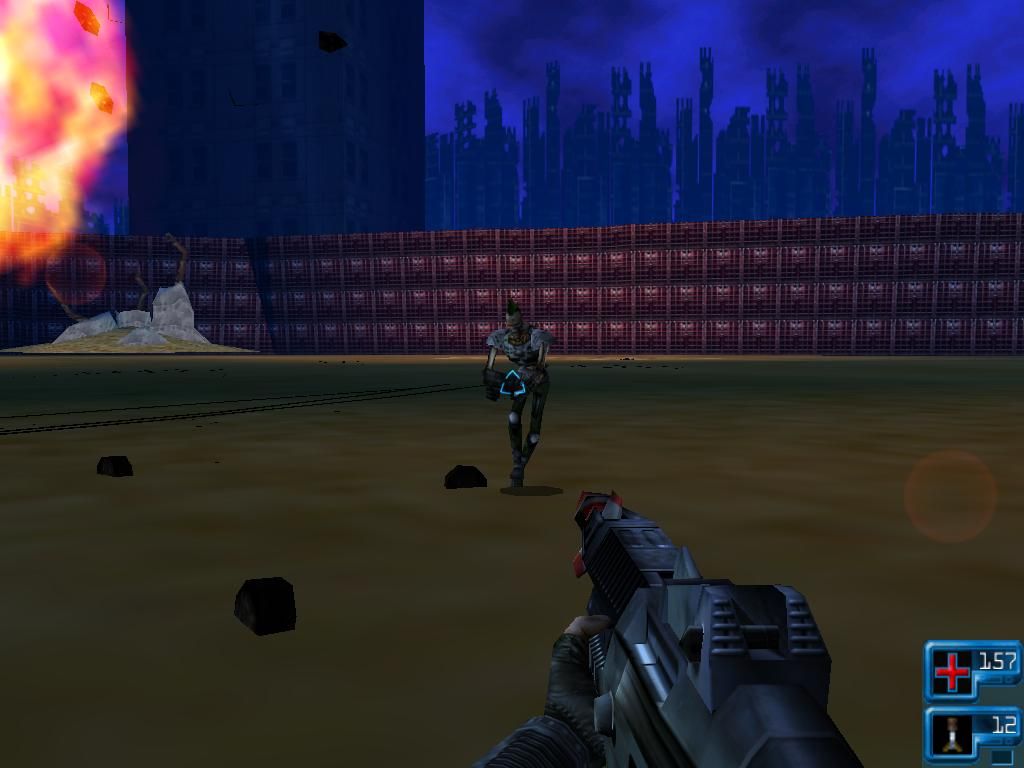 The open, modular level design encourages exploration and experimentation. Each mission takes place in vast outdoor arenas—abandoned cities, desert wastelands, combat tournament rings, even the eerie corridors of Area 51—that brim with hidden caches of ammo, health pickups, and side objectives. You’ll find yourself looping back through familiar territory, rediscovering shortcuts you’d missed or new enemy spawns that weren’t there before. Redline’s in-game save feature means you can tackle these sprawling maps at your own pace, although the lack of an easy mode turns every encounter into a rigorous test of skill.