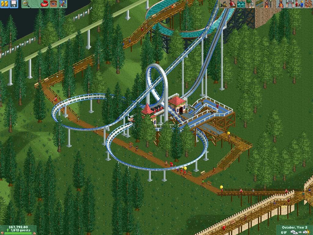 The user interface remains clean and approachable, with tooltips that provide instant feedback on ride intensities, guest happiness, and staff efficiency. Toolbar icons are crisp and instantly recognizable, helping you switch between landscaping tools, coaster pieces, and financial reports without missing a beat. While by today’s standards it may look retro, its readability and nostalgic charm are part of the game’s enduring appeal.
