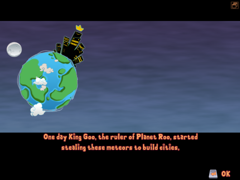 You play as one of the last unaffected Roogoos tasked with preventing King Goo from grabbing any remaining meteors—and restoring your kin to their original, cheerful selves. Cutscenes between worlds use simple sprites and voice snippets to convey the plot, keeping the storyline light and accessible. The sense of progression from one region of Planet Roo to the next gives tangible meaning to the increasing difficulty of the puzzles.