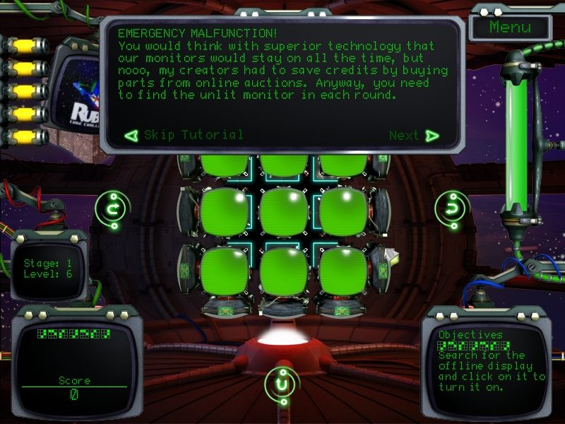 Special stages break up the standard matching puzzles. In reactor‐repair challenges, you must locate a darkened cell within the cube’s interior and click to reactivate it—all under a more punishing fuel drain. Later levels introduce jigsaw‐style puzzles where still images replace the monitor cells, and expanded cube sizes (4×4 and beyond) demand more complex match planning and rapid cube rotations.