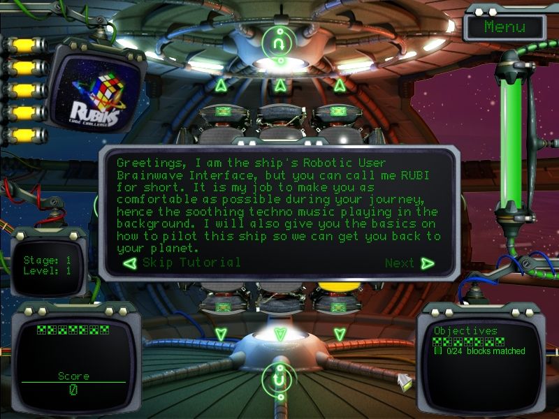 The narrative premise is simple yet engaging: you’re stranded in the depths of outer space, tasked with piloting your damaged ship back to Earth. Your guide is RUBI—the Robotic User Brainwave Interface—a sardonically helpful AI that directs you to assemble and repair sections of your vessel by solving cube-based puzzles.