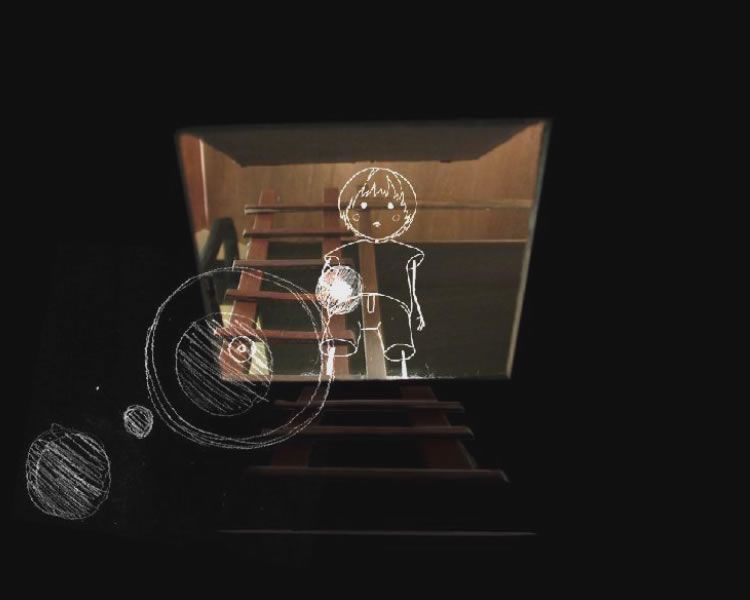 The real highlight appears when a memory is activated. Pencil-sketch figures and objects float over the environment, their simple white lines contrasting sharply with the full-color backdrop. These animations possess a fleeting, ghost-like quality that perfectly suits the theme of recollection. Motion is fluid, yet deliberately rough around the edges, reinforcing the idea of memories as imperfect, fading impressions.