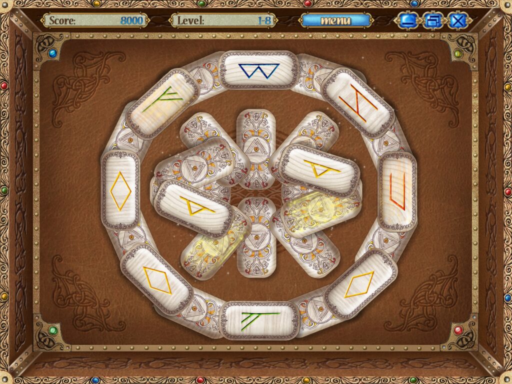 Unlike more complex puzzle titles, Rune of Fate keeps its rules straightforward: only free tiles (those not covered by any other stone) may be paired. This simplicity means you can dive directly into the puzzle-solving flow without poring over lengthy tutorials. The emphasis remains on pattern recognition and planning, as making one wrong match can quickly leave you with no available moves.