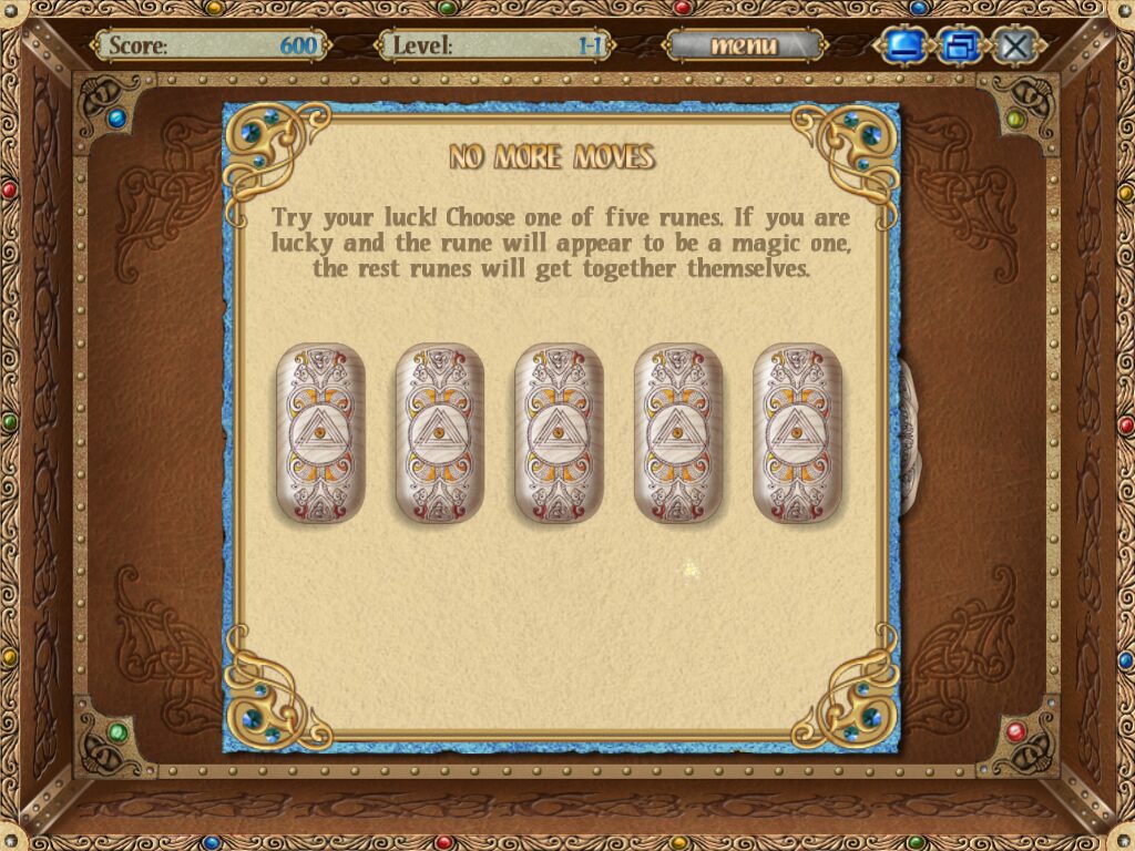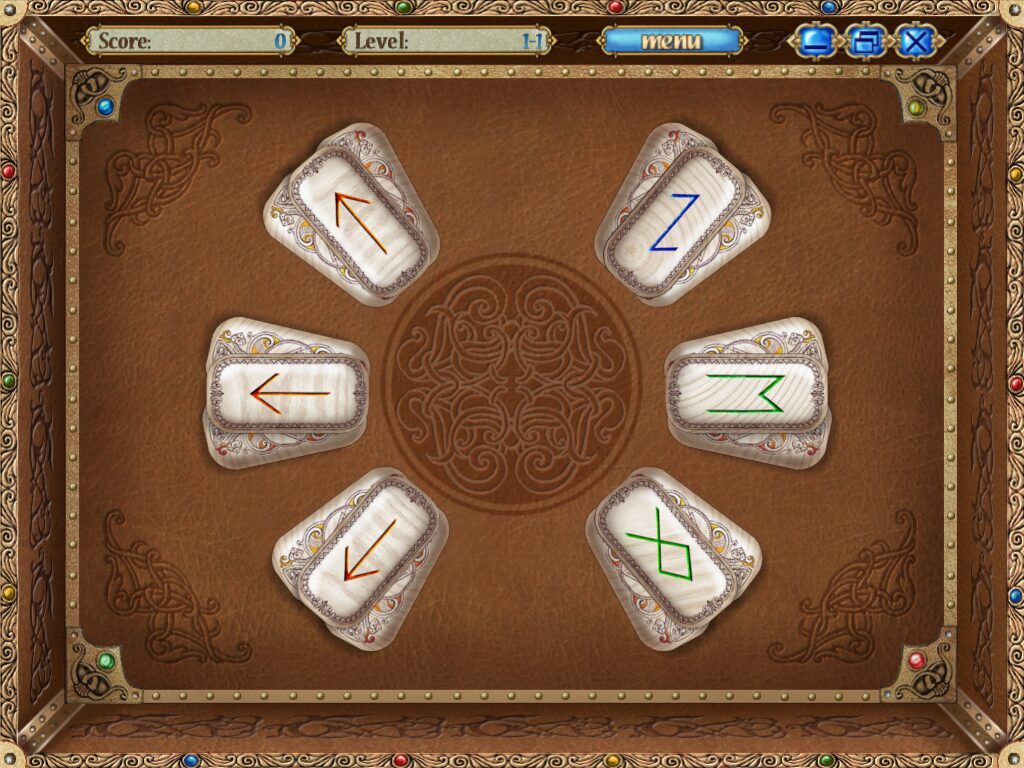 Graphically, Rune of Fate opts for a clean, minimalistic presentation that places full focus on the rune stones themselves. Each tile features a clear, high-contrast icon that makes it easy to distinguish between different runes at a glance. The muted background textures ensure there’s no visual clutter interfering with your puzzle-solving.