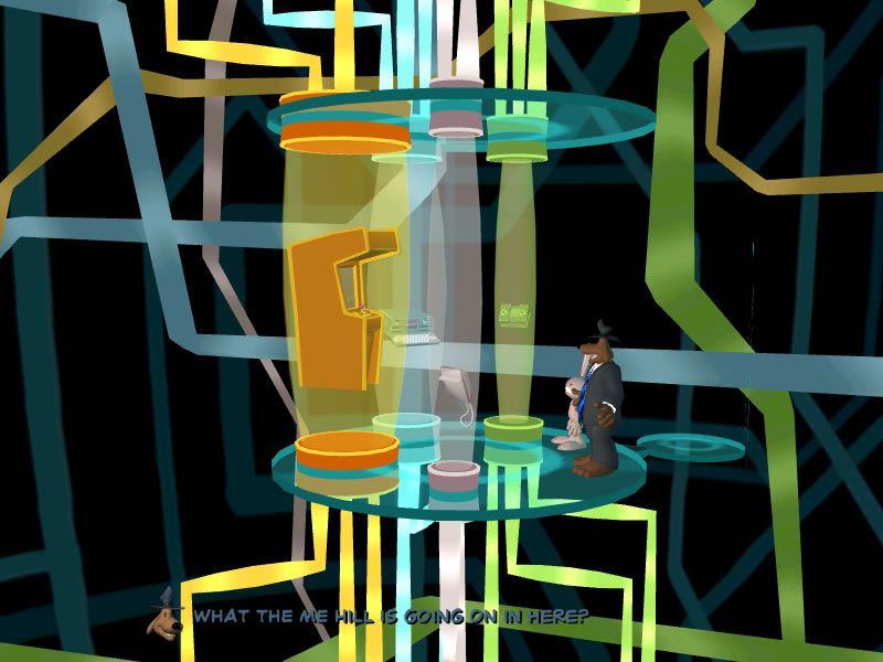 Where Reality 2.0 shines is in its dual-world puzzles. Sam and Max must shuttle between the physical world and the bizarre, digital recreation of it. Actions taken in one realm have immediate consequences in the other—flip a switch in the real world and see a firewall crumble in the virtual, for example. These cause-and-effect scenarios are cleverly designed, forcing players to think across two planes of existence and broadening the challenge beyond conventional inventory combining.