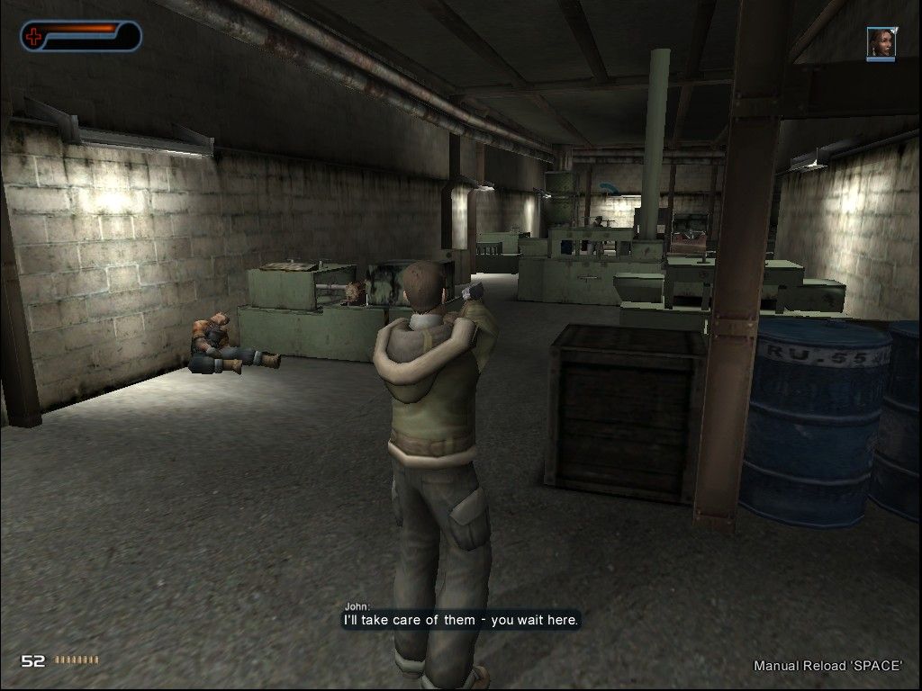 Character models and animations are solid for their era, with realistic weight in John’s movements and convincing muzzle flashes when you swap to a rifle. Psychic powers introduce stylized visual flourishes—distorted heatwaves for telepathy, slow-motion pull effects for telekinesis, and ghostly trails when you project your spirit. These effects remain one of the game’s most memorable aspects and still look striking against the drab facility backdrops.