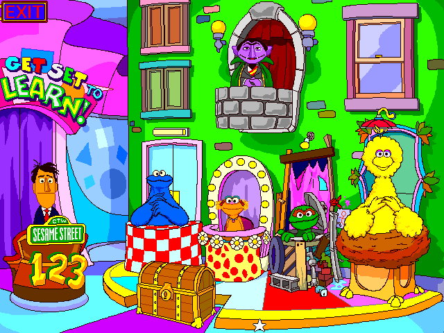 Sesame Street: Get Set to Learn features five fun and challenging educational activities designed for children aged 3 to 6. Each mini-game is hosted by a beloved Muppet from the TV show, providing familiar faces like Elmo and Cookie Monster to guide young learners through counting exercises, color matching, letter recognition, and simple puzzles. The controls are straightforward—point, click, and drag—making it accessible for pre-readers and keyboard novices alike.