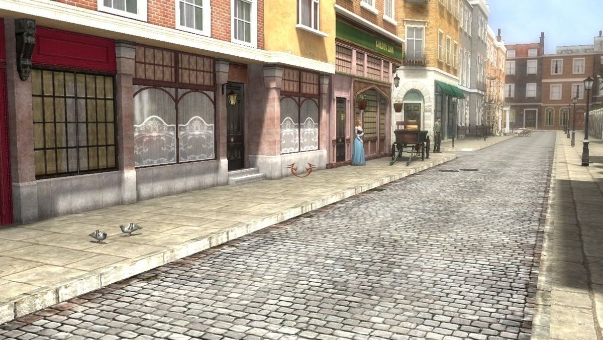 Sherlock Holmes: Nemesis presents turn-of-the-century London with a blend of 3D-rendered environments and pre-rendered backdrops. Key landmarks such as the British Museum, Buckingham Palace, and the Tower of London are richly detailed, with ornate décor, period-accurate costumes, and ambient lighting that captures the foggy, gaslit streets of Victorian England.