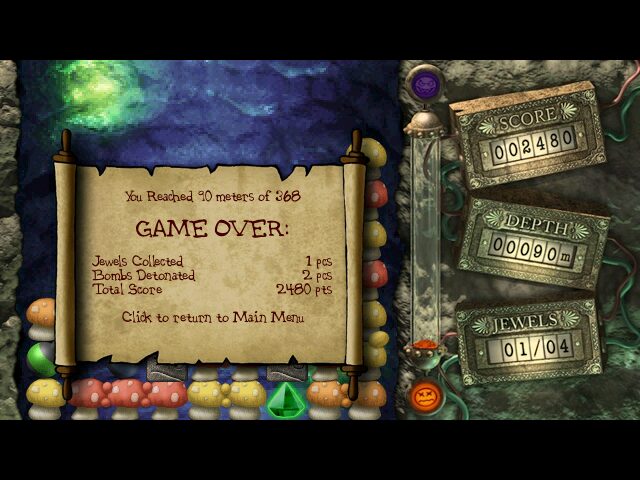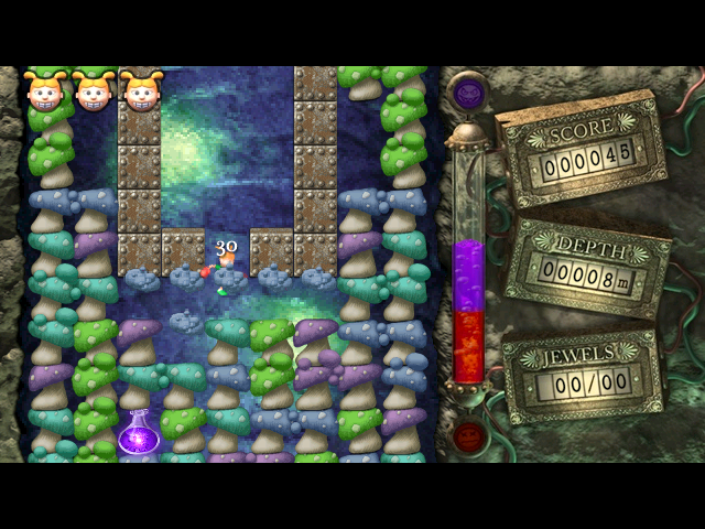 Controls are intuitive and responsive, allowing you to switch seamlessly between keyboard and mouse inputs. A downward or sideways punch removes all connected mushrooms of the same color in a satisfying burst, while special “stone” tiles require multiple hits before crumbling. Bashful can clamber over obstacles one tile high, introducing light platforming elements that mix things up as you dig deeper.