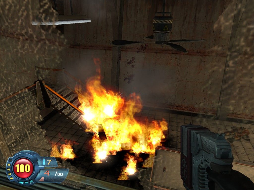 The core combat revolves around a modest arsenal—pistol, shotgun, assault rifle, incendiary grenades—with each weapon featuring a distinct secondary fire mode. Aiming down sights improves accuracy at the cost of mobility, encouraging a balance between run-and-gun firefights and deliberate target acquisition. Scattered cover points, explosive barrels, and occasional vehicle sequences help break up corridor-based encounters, adding just enough variety to keep skirmishes from growing stale.