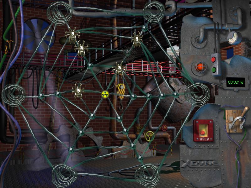 Despite its minimalist palette, the game uses visual cues effectively. Spiders flash briefly before committing to a move, giving you a split-second window to plan your next turn. Background animations—steam vents, flickering wires, and distant conveyer belts—add depth to each playfield without distracting from the core gameplay. The result is an art style that feels both purposeful and atmospheric.