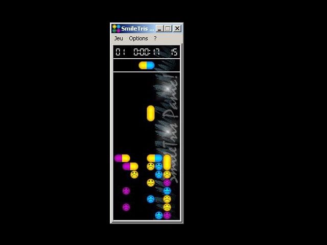 By default, SmileTris Panic! uses simple, pixel-based art that evokes the retro charm of early ’90s freeware, complete with bright, blocky pills and smiley-face viruses in bold primary colors. The straightforward visuals ensure that gameplay remains crystal clear—no distracting frills, just shapes and hues you can quickly read at a glance.