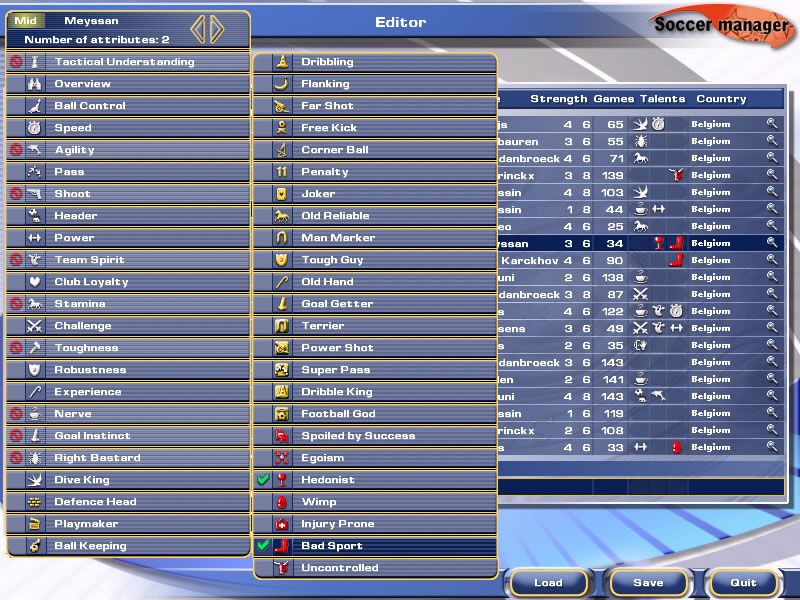 Club facilities and stadium upgrades are depicted through schematic diagrams rather than photorealistic renderings, but this minimalist approach keeps the focus on strategic choices. The editor interface follows suit, offering sliders and numeric fields for each variable, which veteran managers will appreciate for its precision and directness.