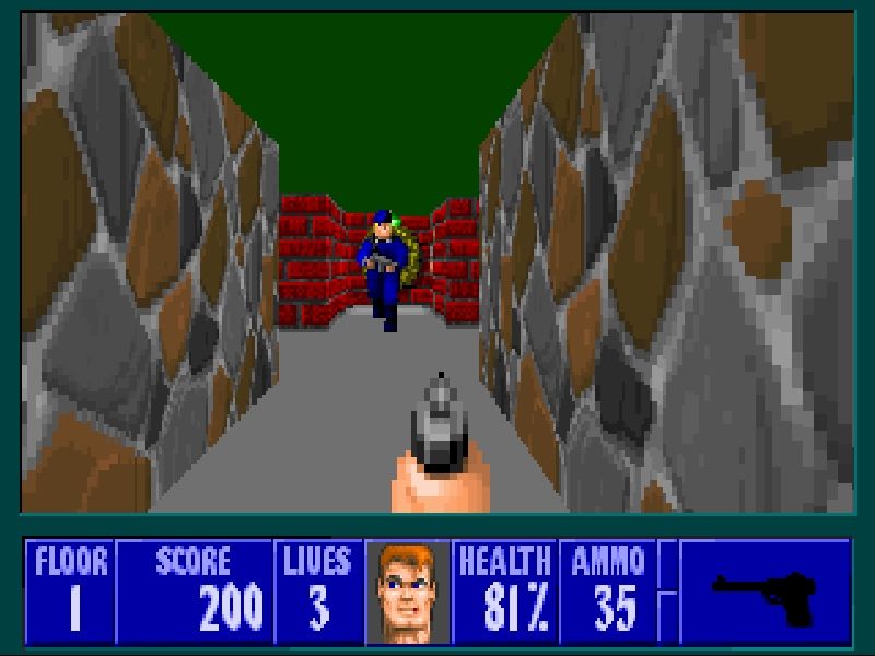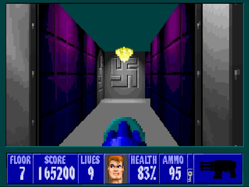 Visually, Spear of Destiny retains the blocky, pixelated aesthetics of early ‘90s shooters. Textures are repetitive by today’s standards, but the dark stone walls, flickering torches, and Nazi insignia evoke a distinctly ominous atmosphere. The three episodes share the same graphical assets, yet subtle palette changes and new tile sets in later missions help distinguish each expansion.