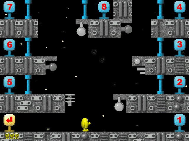 The sprite work for Blupi himself is surprisingly detailed: his iconic round silhouette and expressive animations communicate momentum and urgency, whether he’s leaping up three screens or dodging bombs on the ground. Environmental elements share the same charm; treasure chests glint enticingly, and hidden passages blend seamlessly into the terrain, rewarding curious players who dare to explore.