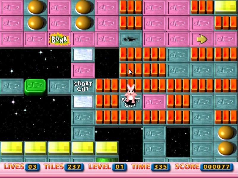 At its heart, Sqiek presents a lighthearted, whimsical narrative: a pink rabbit on a mission to bring color back to a drab, monochrome world. There isn’t a deep, branching storyline here, but the premise is charming and serves as a perfect backdrop for the arcade action. Each level feels like another step in Sqiek’s broader quest to dispel greyness and restore vibrancy to his environment.
