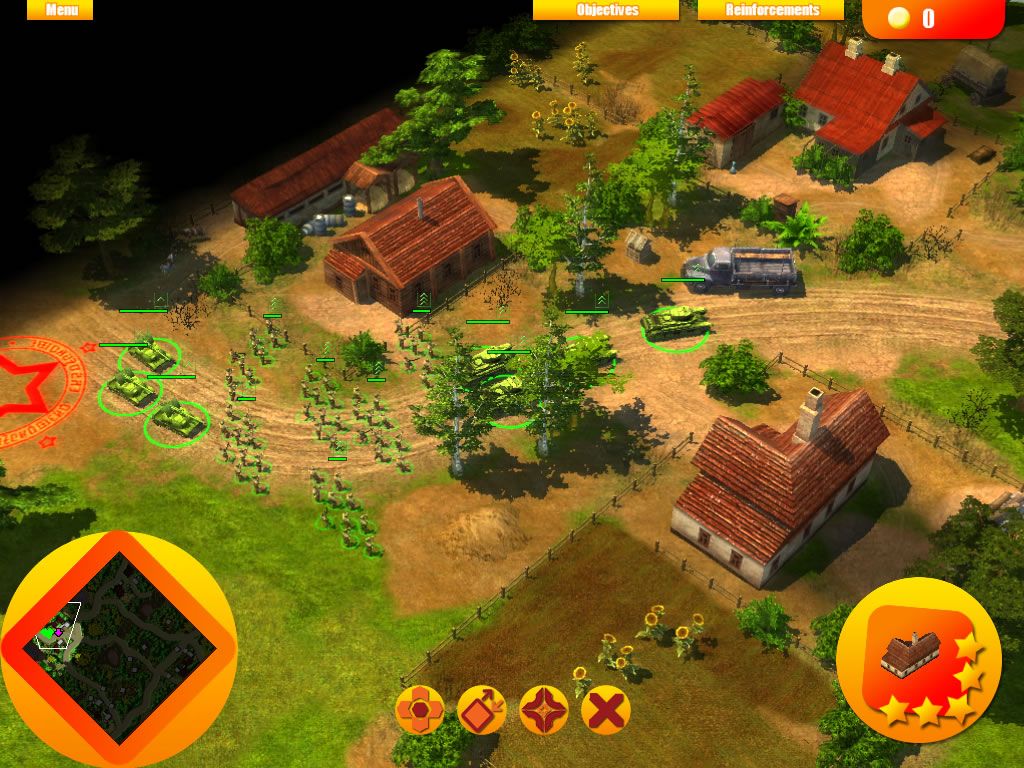 Unit selection and control remain straightforward: click to select your infantry, Spetsnaz squads, or an array of iconic tanks (from the laughably essential T-34 to the fortress-sized T-35), then point and shoot. A mini-map with fog of war keeps you aware of enemy movements, while keyboard shortcuts and a zoomable, rotatable camera help you maintain battlefield awareness. With only twelve missions in the single-player campaign, each stage feels like a bite-sized burst of chaotic action.