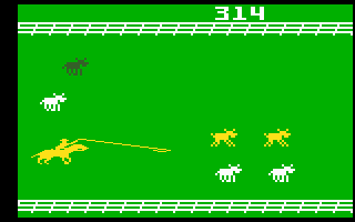 As you progress, the game’s pace ratchets up dramatically. More calves flood the screen, each sprinting at its own unpredictable speed, demanding split-second decisions about which target to pursue first. The tension is heightened by the “three calves past, and it’s game over” rule, which forces you to balance aggressive netting with strategic herding. This clever risk–reward system means you’re constantly juggling multiple objectives: maximize your score, minimize escapes, and avoid exhaustion.